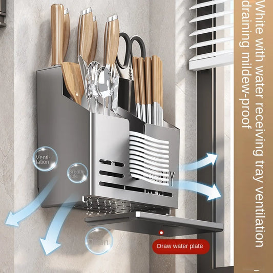 kitchen knife holder, rack, wall hanging cutter, chopstick cage, chopstick tube, stainless steel