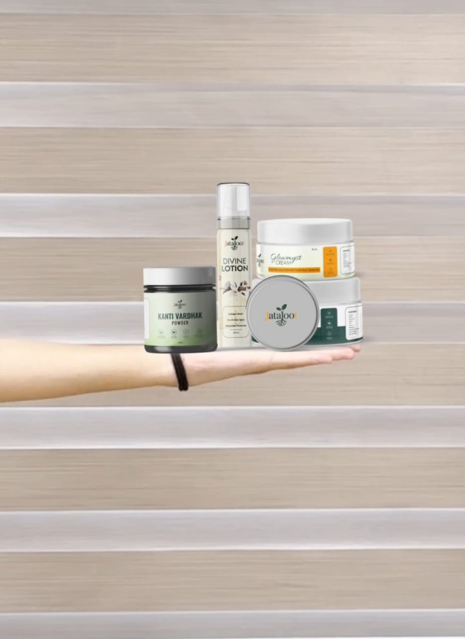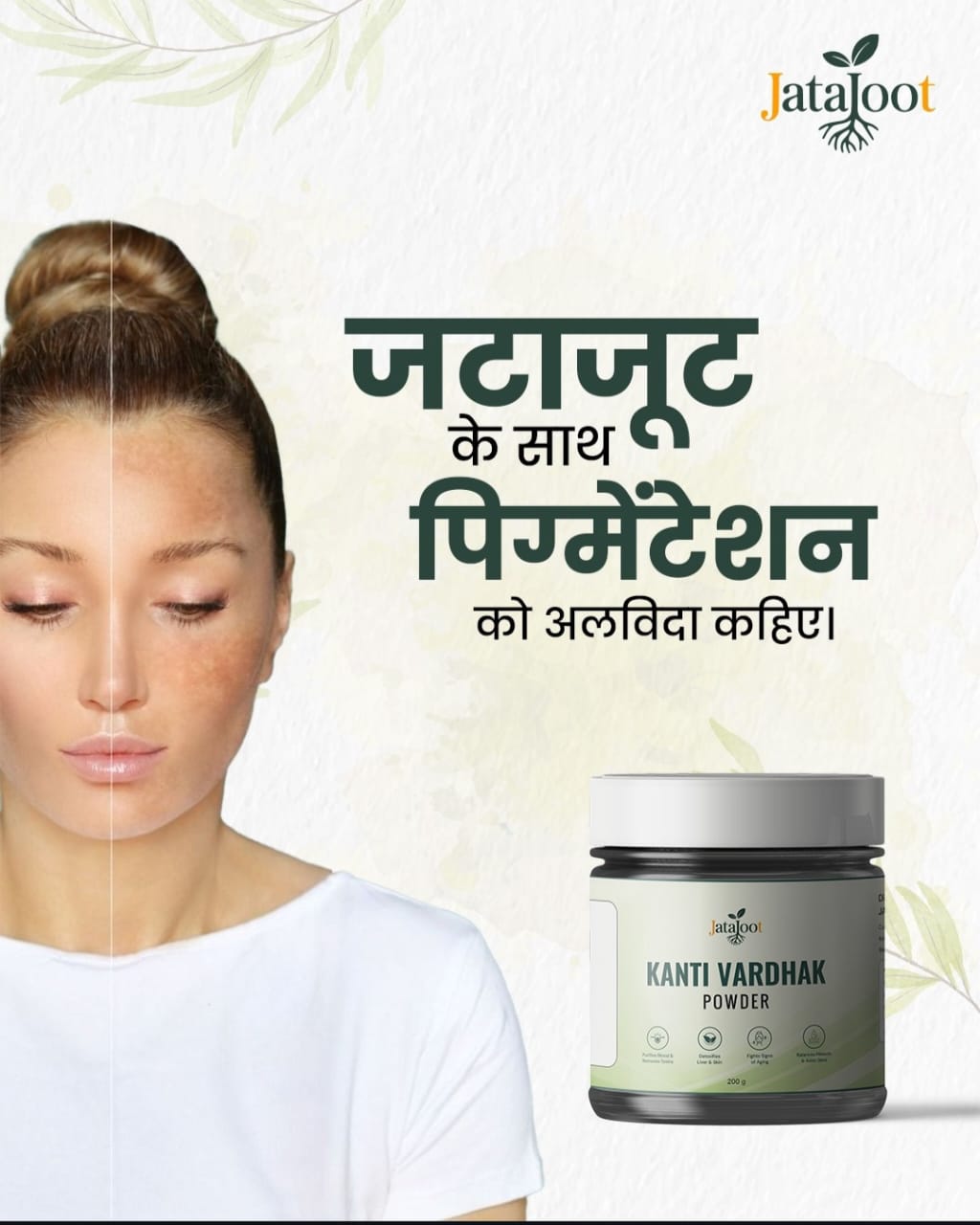 जटाजूट कांति वर्धक पाउडर आपकी त्वचा को प्राकृतिक चमक और निखार देने वाला एक आयुर्वेदिक फॉर्मूला है। यह पिग्मेंटेशन, दाग-धब्बे और टैनिंग को कम कर के त्वचा को समान रंगत प्रदान करता है। इसमें मौजूद जड़ी-बूटियाँ त्वचा को अंदर से पोषण देती हैं, जिससे चेहरा दमकता और मुलायम बनता है।