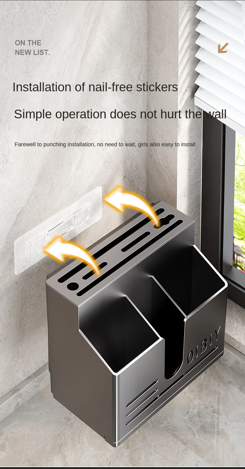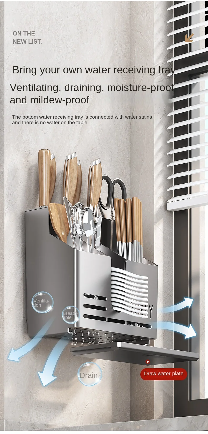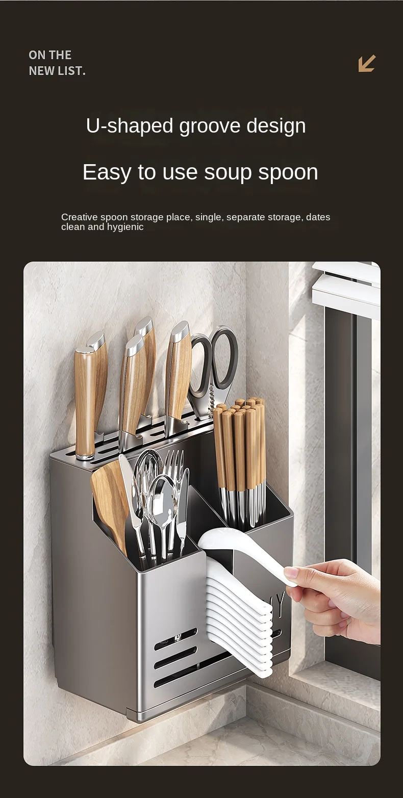 kitchen knife holder, rack, wall hanging cutter, chopstick cage, chopstick tube, stainless steel