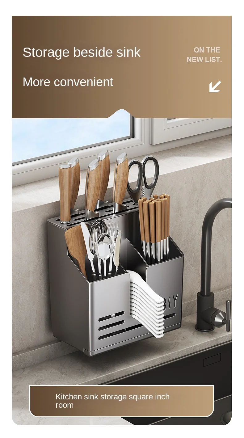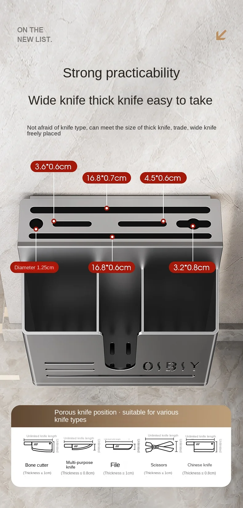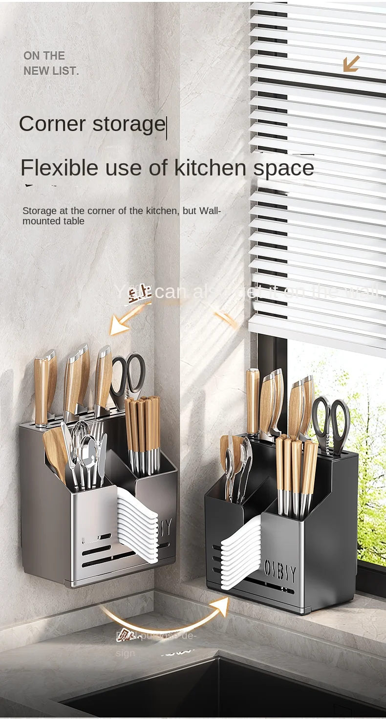 kitchen knife holder, rack, wall hanging cutter, chopstick cage, chopstick tube, stainless steel